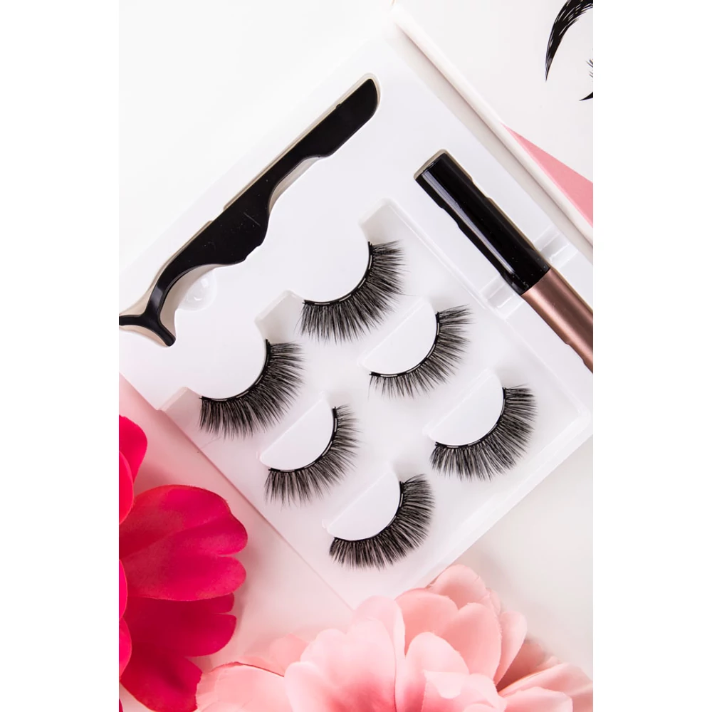 3 db-os Vegyes Soros Mágneses Műszempilla Szett Tussal És Csipesszel