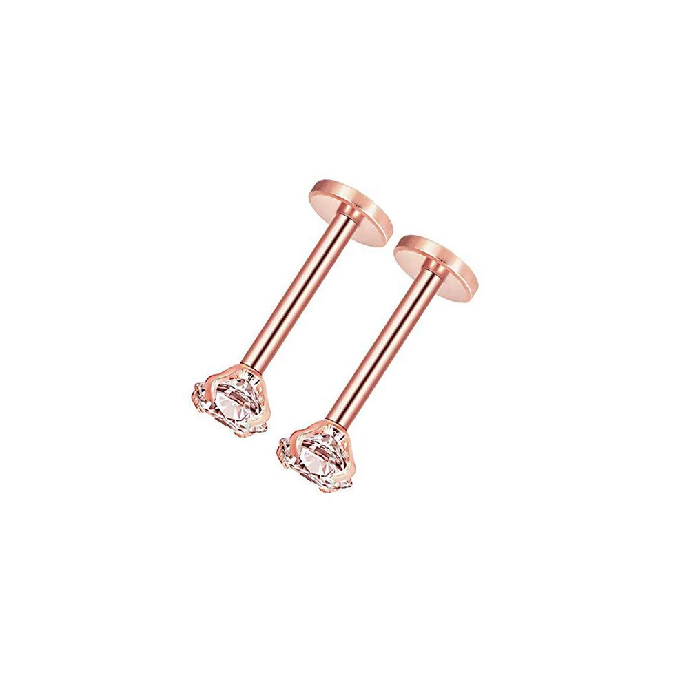 2 Darabos Rózsaarany Színű, Belső Menetes Orvosi Acél Piercing Szett Cirkónia Kővel
