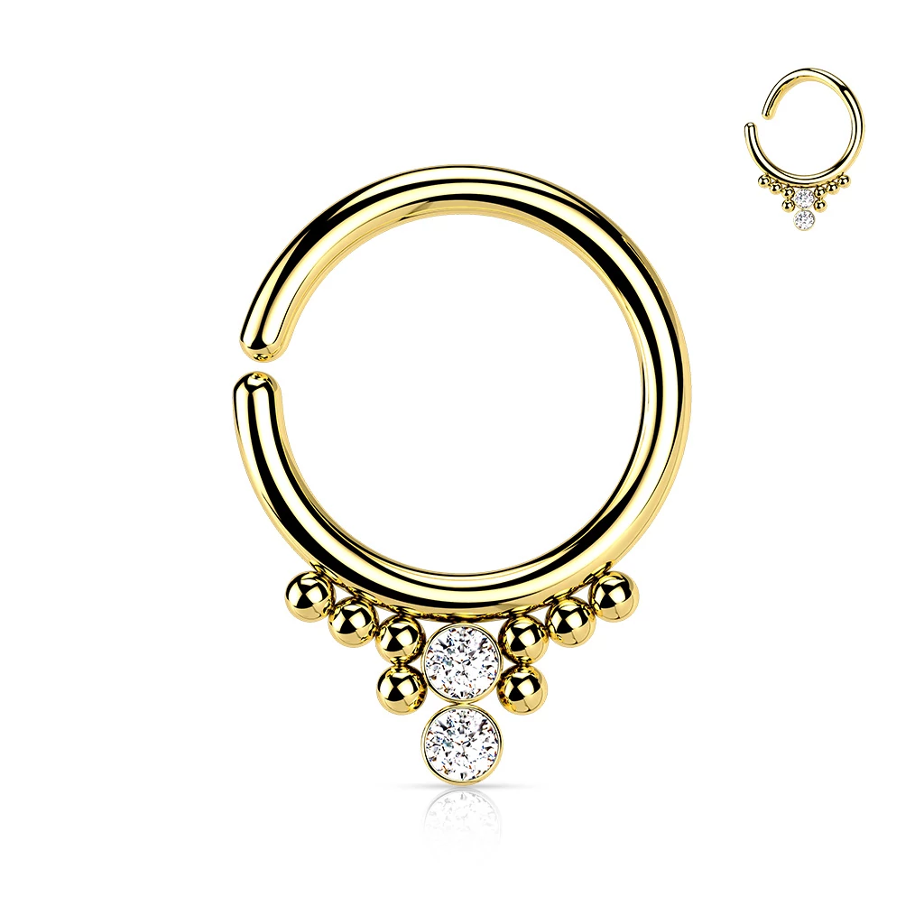 Arany Színű, 316L Orvosi Acél Hajlítható, Cirkónia Kő és Bogyó Díszítésű Karika Piercing