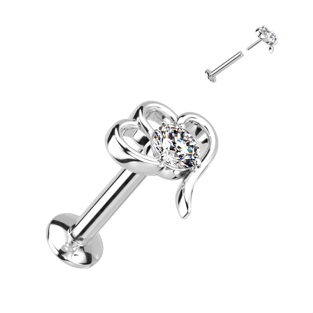 Ezüst Színű 316L Orvosi Acél Labret Piercing Fehér Ovális Kövekkel