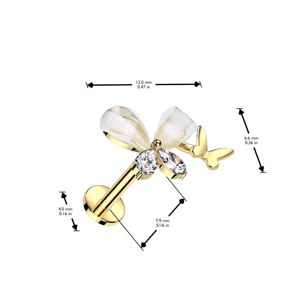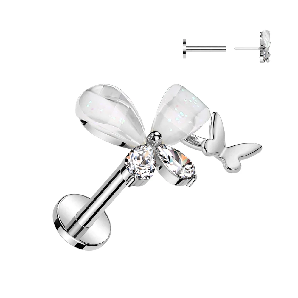Ezüst Színű 316L Orvosi Acél Labret Piercing Réz Pillangó Dísszel