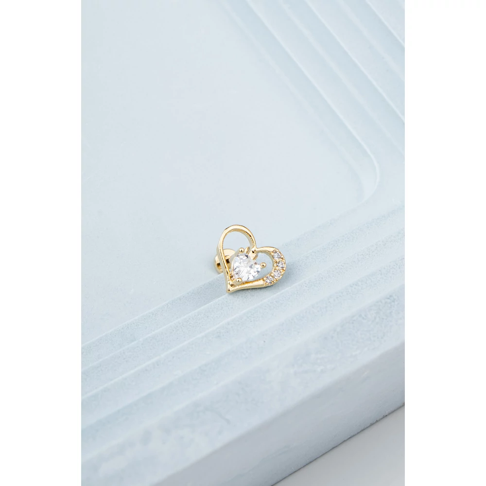 Ródiumozott Arany Színű Orvosi Acél Szívecskés Arc Piercing Cirkónia Kövekkel