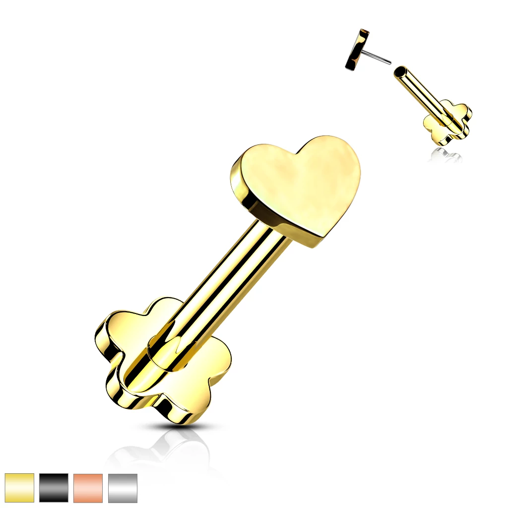 Arany Színű Szív És Virág Alakú Titánium Egyenesszárú Labret Piercing