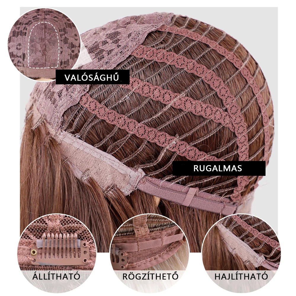 Ez a paróka elegáns, egyenes fazonjával és természetes hatású, aranyszőke árnyalatával kifejezetten nőies megjelenést biztosít. A vállig érő bob frizura lágyan keretezi az arcot, miközben a finom oldalfrufru még természetesebb összhatást nyújt. A belső hálós kialakítás rugalmas és légáteresztő, így hosszabb viselés közben is kényelmes marad. Ez a modern, mégis klasszikus stílusú paróka ideális mindennapi viselethez, de különleges alkalmakra is tökéletes választás.