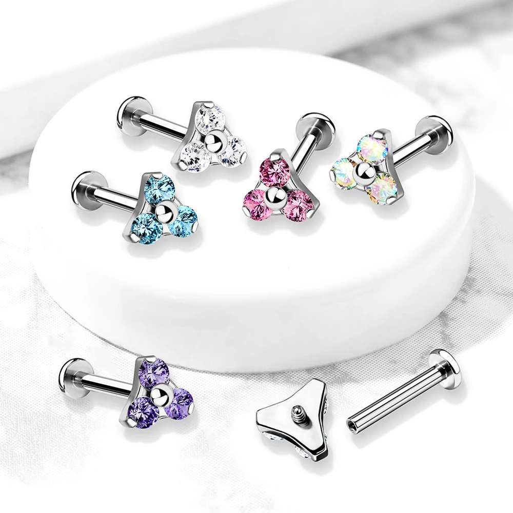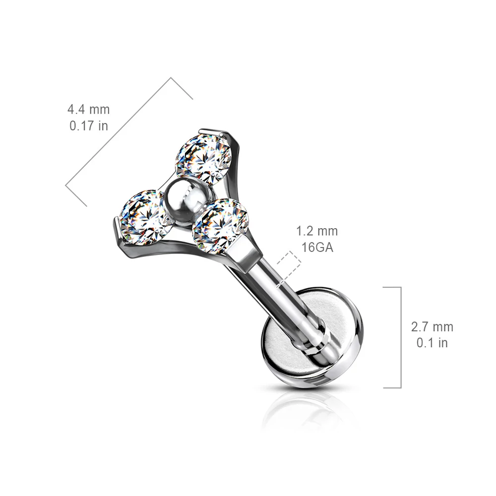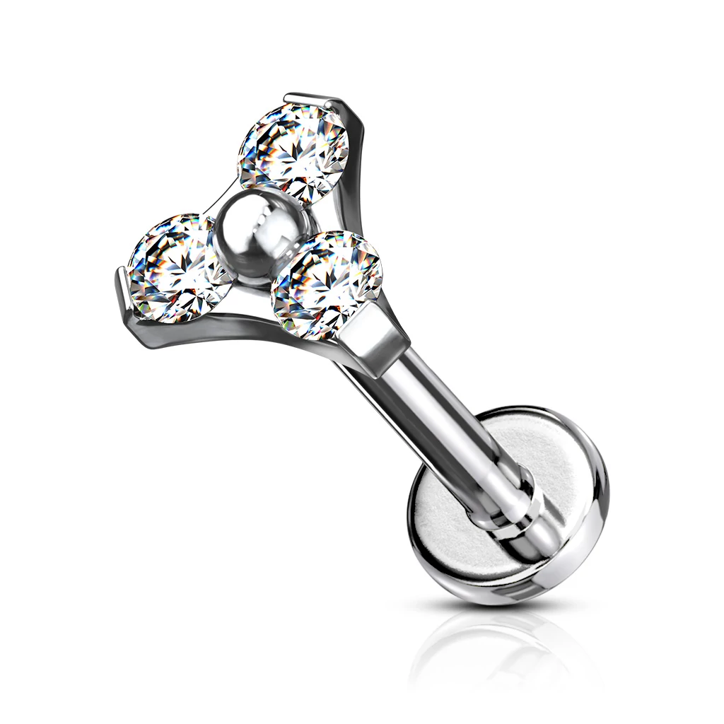 Ezüst Színű 316L Orvosi Acél Egyenesszárú Labret Piercing Fehér Kővel