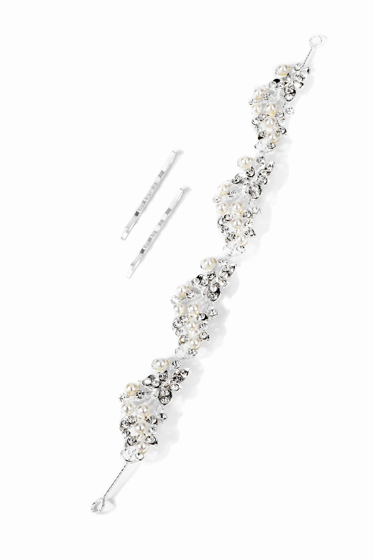 Elegáns és letisztult hajdísz, melyet pillangó alakú csillogó strasszkövek és gyöngyök tesznek különlegessé.