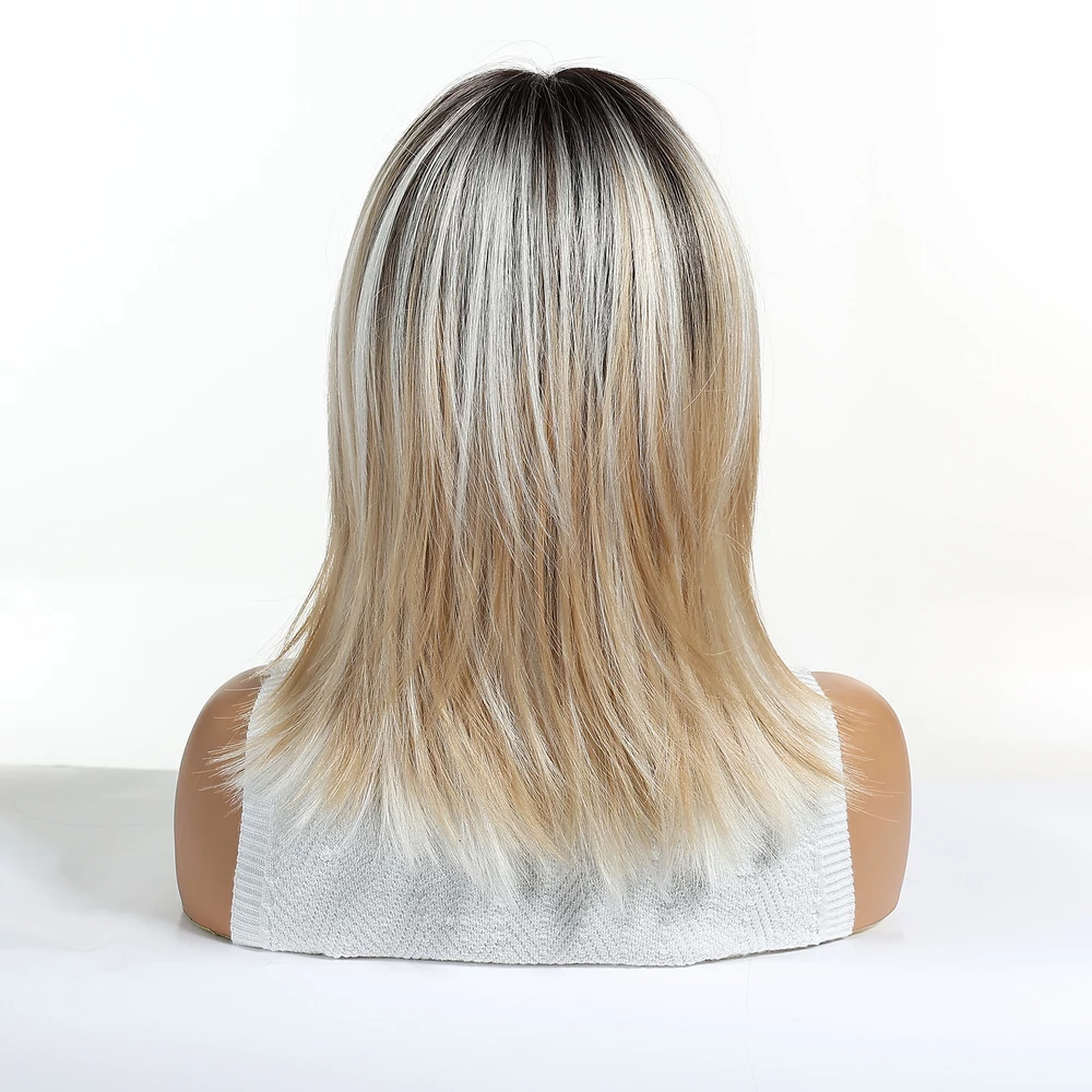 Ez a modern, középhosszú paróka természetes hatású, sötétebb tövekkel és puha, hamvasszőke árnyalattal készült, amely élettel teli, mégis letisztult megjelenést biztosít. frizura egyenes, enyhén befelé ívelt végei természetes mozgást és volument adnak, így bármilyen alkalomra ideális választás. Tökéletes megoldás azok számára, akik stílusos, mégis visszafogott megjelenést keresnek, anélkül, hogy a saját hajukat formázni vagy festeni kellene.