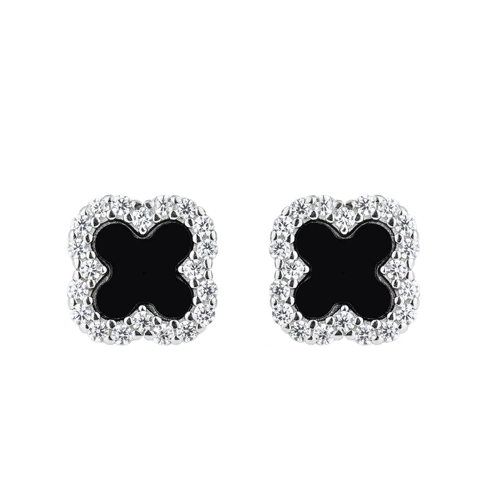 Ez a fülbevaló elegáns kialakításával tűnik ki, amelynek középpontját fekete betét alkotja, körülötte apró, csillogó kövekkel kirakva. A négykaréjos forma klasszikus és letisztult megjelenést biztosít, amely könnyedén kombinálható különféle stílusokkal. A bedugós záródás kényelmes viseletet tesz lehetővé, így mindennapi használatra és alkalmi megjelenéshez is megfelelő választás. Az ékszer modern és időtálló hatást kelt, miközben diszkrét ragyogásával kiemeli a megjelenést.