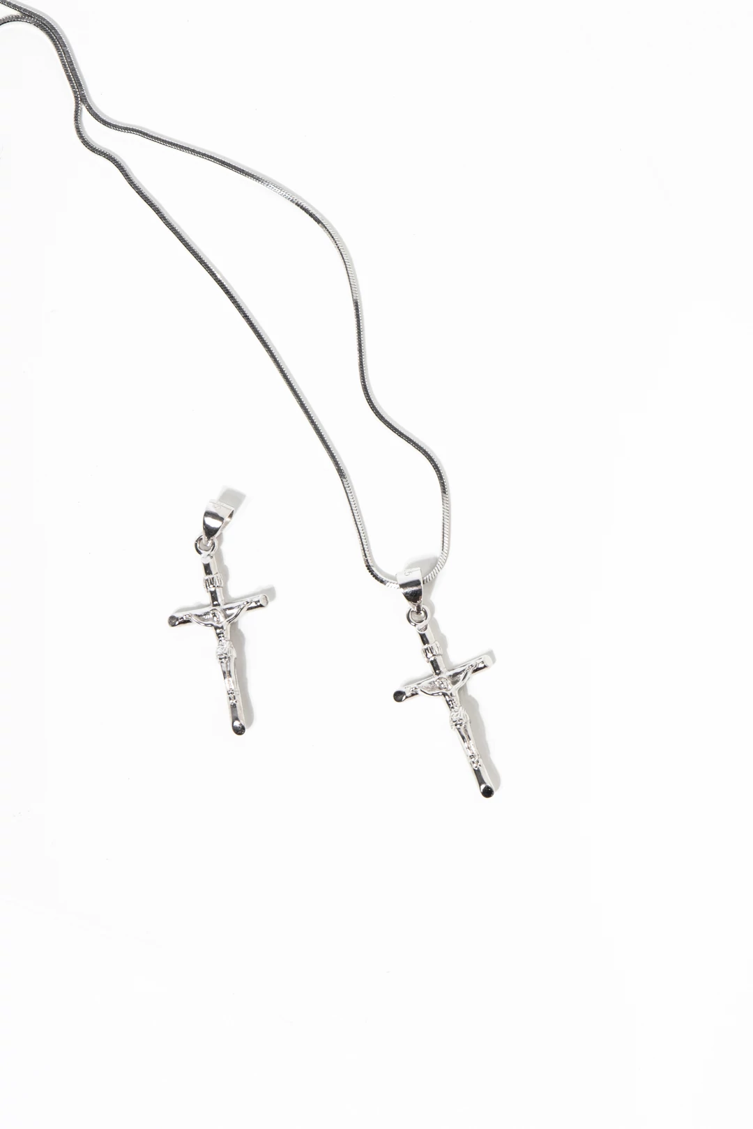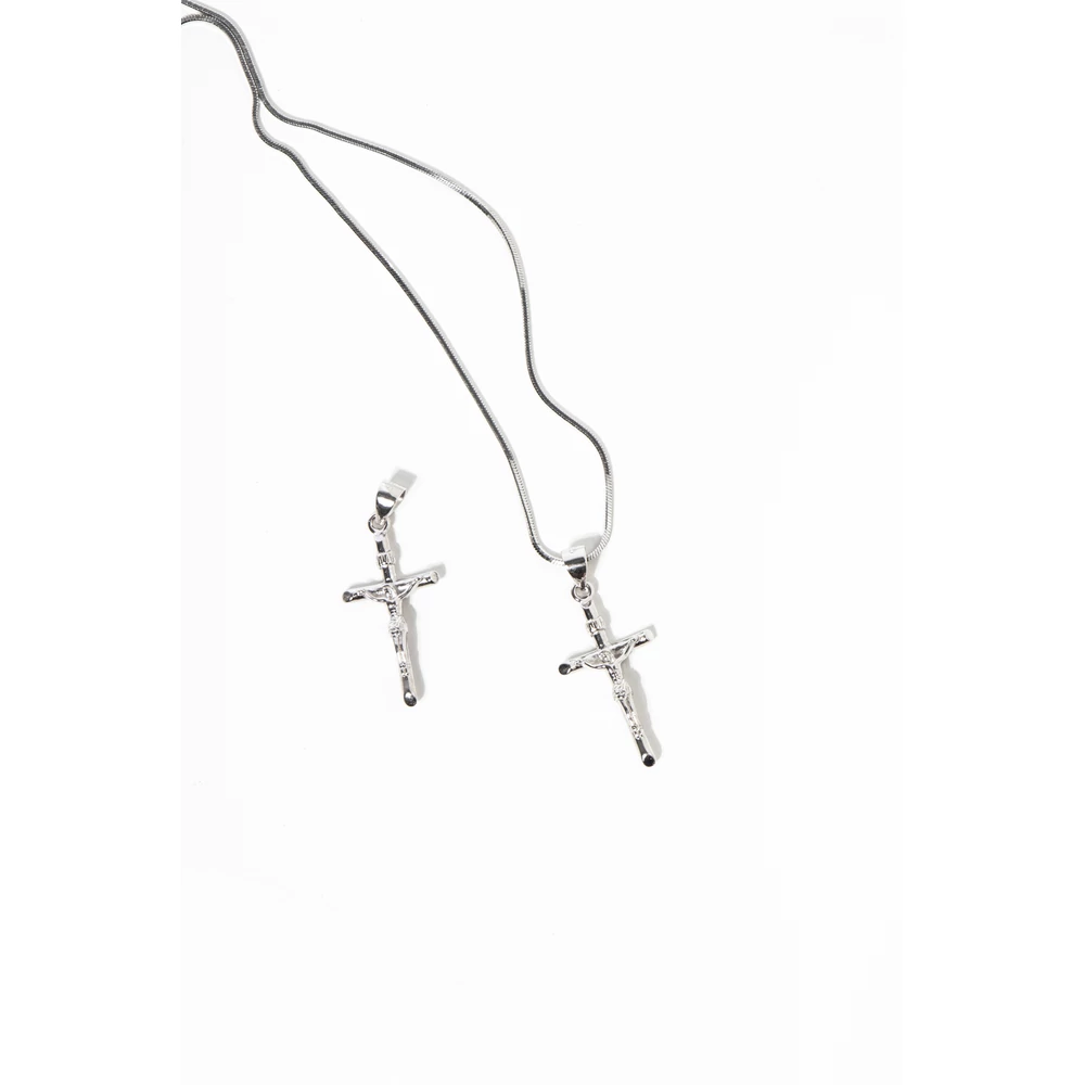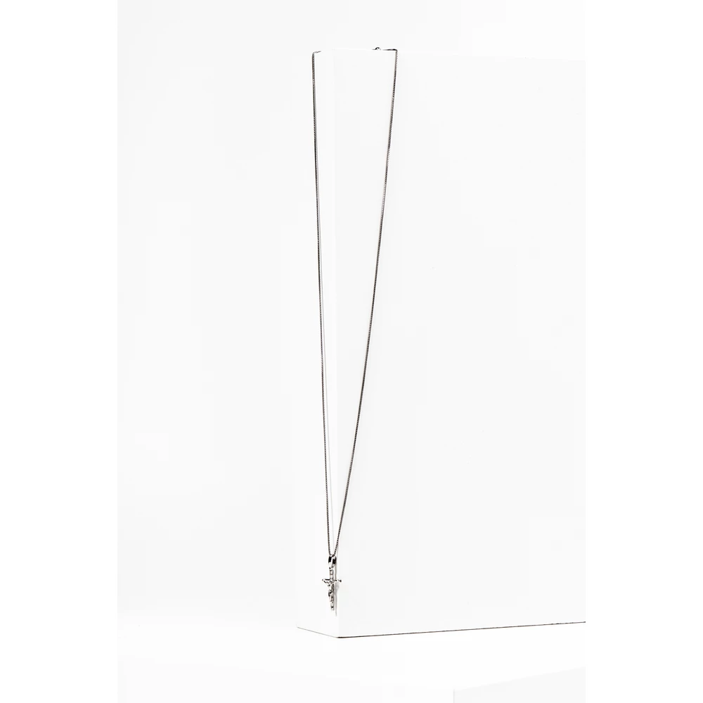 S925 ezüstből készült nyaklánc, melyet kereszt alakú medál ékesít.