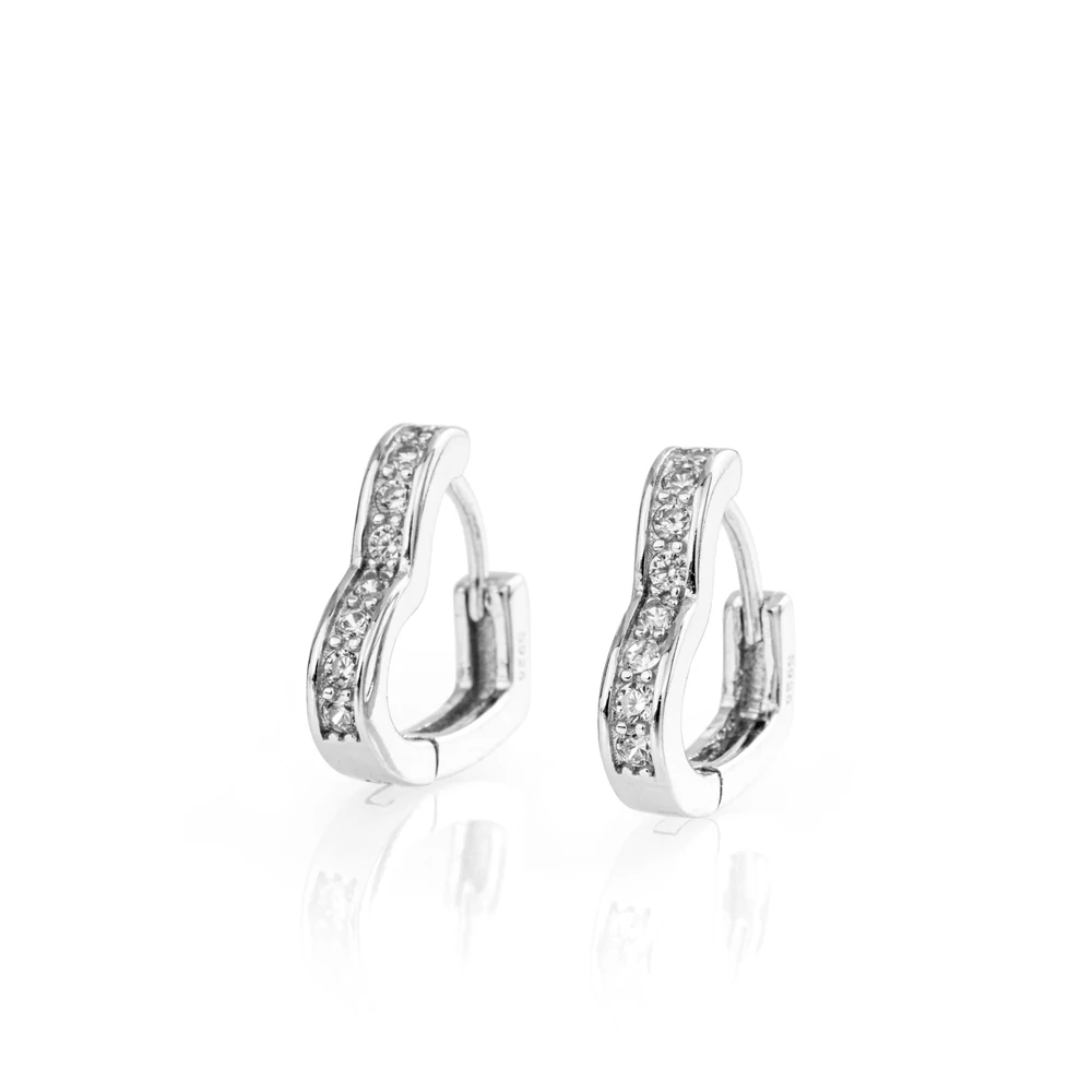 Fehér Szív Alakú Swarovski® Kristályokkal Kirakott S925 Ezüst Fülbevaló -10mm